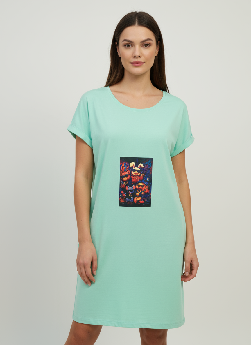 Rochia Streetwear Wolpha este alegerea perfectă pentru cei care apreciază un stil urban, modern și relaxat. Cu o croială lejeră, această rochie este ideală pentru orice ocazie casual. Lungimea care ajunge deasupra genunchilor oferă un aspect versatil, fiind potrivită atât pentru plimbări de zi, cât și pentru întâlniri relaxate. Designul gulerului rotund, cu decolteu adânc, adaugă un aer chic și îți pune în valoare silueta.